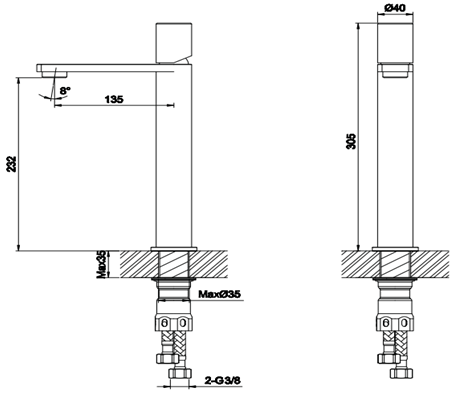 Cartucho disco cerámico 35 mm. Peso: 1850 gr. Aireador interior. Contiene latiguillos pero no válvula de desagüe. Plus: Fácil montaje.