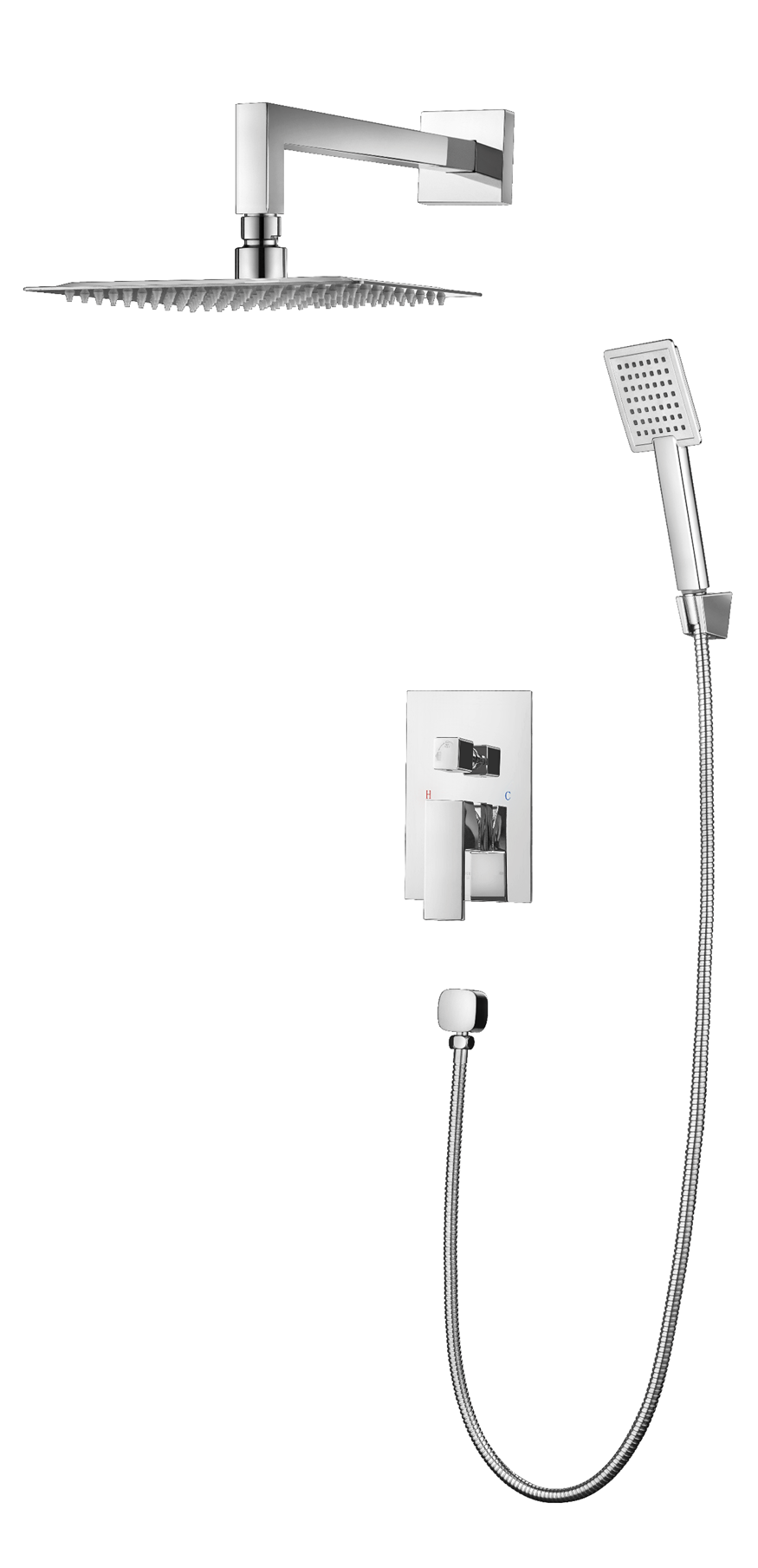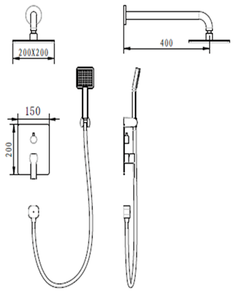 Cartucho disco cerámico 40 mm. Peso: 4530 gr. Rociador: Material: inox y barra de latón. Medidas: 20x20 cm y barra 40 cm. Jets anticalcáreos. Orientable. Mango de ducha: 1 posición. Material: ABS. Inversor: Material: Latón. Giratorio. Grifería monomando: Material: Latón. Disco cerámico 35 mm.